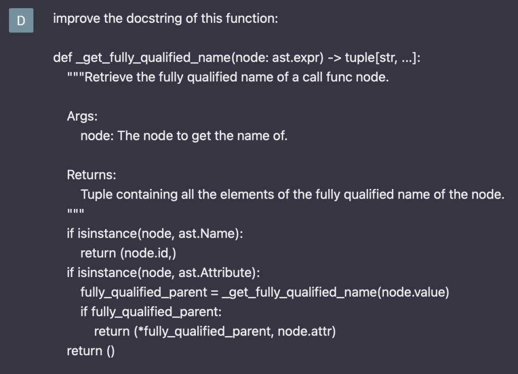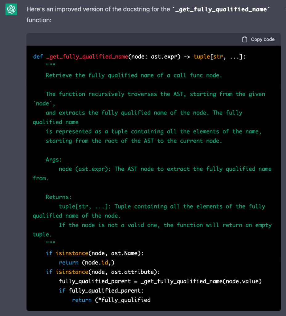 Asking ChatGPT to write the docstring for the _get_fully_qualified_name function
